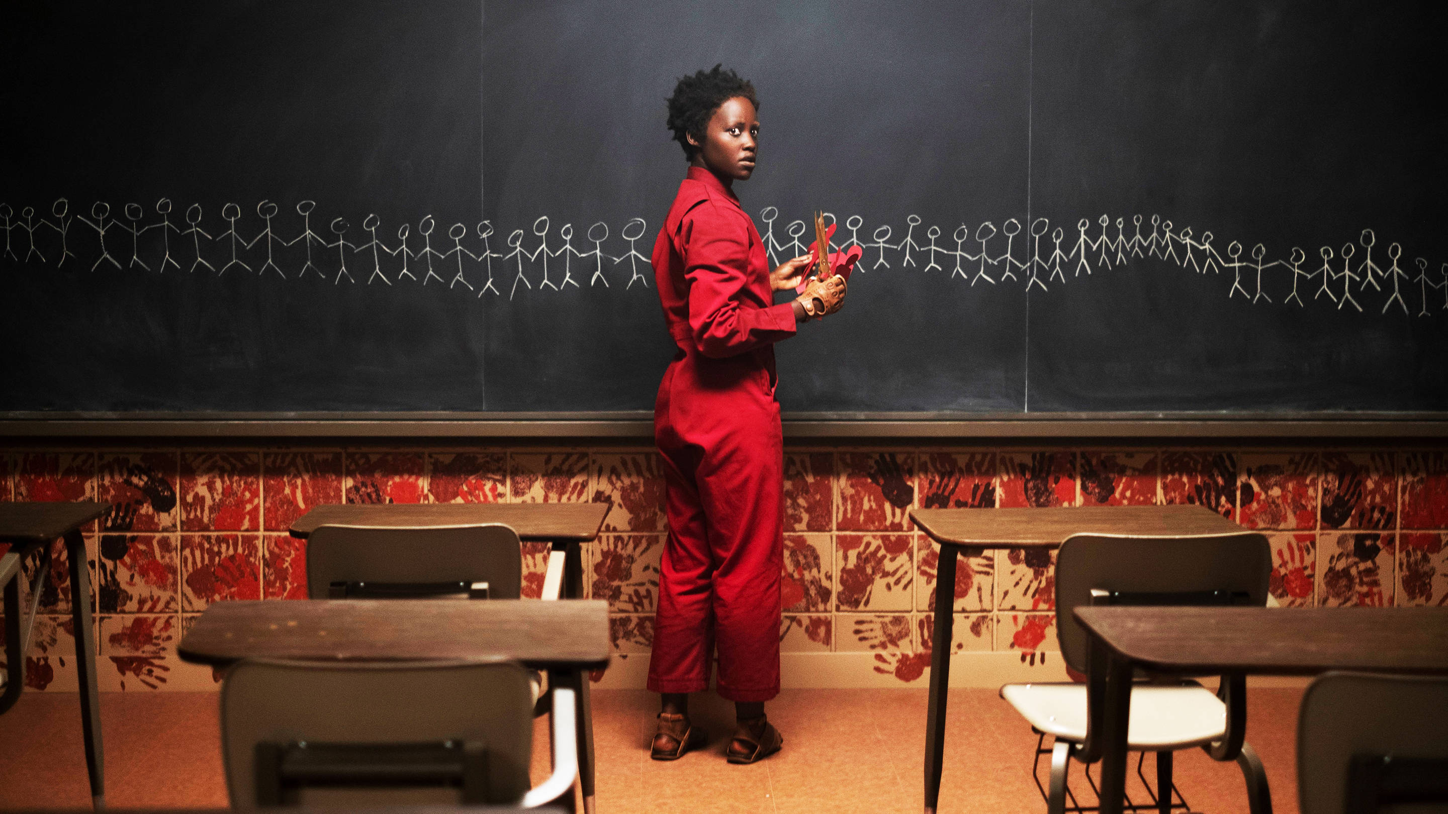 Us follows the story of Adelaide (portrayed by Lupita Nyong’o and Madison Curry as her younger self), who had a traumatic experience at Santa Monica beach, going into a room full of mirrors and getting spooked by an apparent doppelganger. For decades she had been suppressing this memory. The film follows her in the present day, with her family comprising of her husband Gabe (portrayed by Winston Duke) and her two children Zora (portrayed by Shahadi Wright Joseph) and Pluto (portrayed by Evan Alex), going on a summer holiday by the beach. After finding out that Gabe wants to take them to Santa Monica beach, Adelaide starts freaking out due to her past experience and trauma. After meeting family friends and briefly losing Pluto, the family gets home safely. Later that night however, they notice a family in the dark, just standing there outside the driveway. After Gabe threatens them, they force their way onto the house. They were identical to the family, only wearing red and carrying a large pair of scissors. The story then basically goes into them escaping this creepy, scary family, trying to find out who they are and what they want.